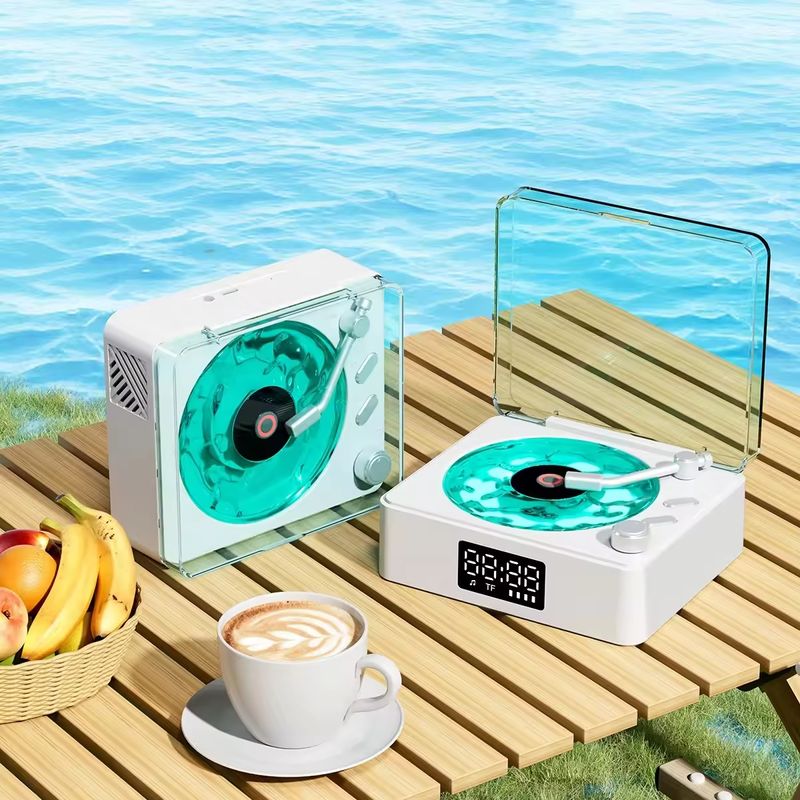 Altifalante giratório retrô com efeito de projeção de luz estéreo, toca - discos de vinil com ruído branco e Bluetooth sem fio