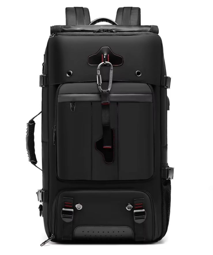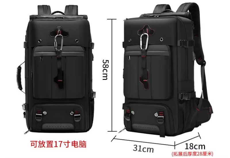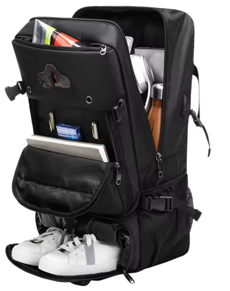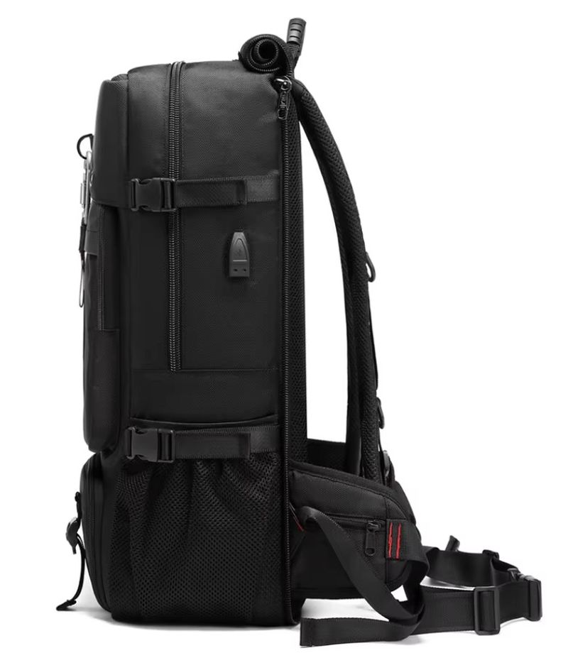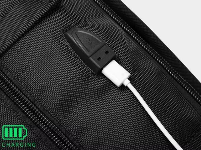 Mochila preta mochila para laptop com porta de carregamento impermeável mochila de caminhada ao ar livre de curta distância